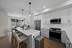 Welcome to this modern and stylish 3-storey end unit townhouse located in the highly sought-after neighbourhood of Juniper Ridge. Built in 2022, this beautifully designed home features 3 bedrooms, 2 full bathrooms, and 2 half baths, offering a spacious and functional layout perfect for families or professionals. The entry-level includes a bright bedroom or ideal home office, a convenient half bath, a mudroom, and access to the oversized single garage, which is equipped with EV charging . On the second level, you'll find a contemporary open-concept kitchen with quartz counters, dining, and living area with large windows that fill the space with natural light, along with access to a private balcony perfect for relaxing or entertaining. The top floor features two generous bedrooms, two full bathrooms including a primary ensuite, and a laundry area for added convenience. Located in a quiet, family-friendly community surrounded by trails, and parks, this move-in-ready home combines modern living with the natural beauty of Juniper Ridge. Call me today to schedule your viewing! All measurements are approximate and to be verified by the Buyer.