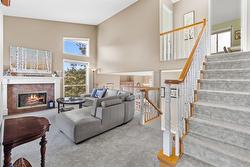 Discover refined living in this beautifully crafted, four-level split home with a bright walk-out daylight basement. Perfectly positioned in sought-after Eagle Heights on a quiet cul-de-sac, this custom residence backs onto a serene forested greenbelt, offering exceptional privacy and a picturesque natural setting. With approximately 3,200 sqft of well-designed living space, this home offers 4 bedrooms and 4 bathrooms. The thoughtfully modelled kitchen opens to a cozy eating area and an inviting family room complete with a gas fireplace and sliding doors to a covered deck—ideal for year-round enjoyment. The impressive living room boasts vaulted ceilings and a gas fireplace, overlooking the elegant formal dining room. A convenient den and laundry room complete the main level. The lower level provides a spacious family/rec room perfect for movie nights or entertaining. Comfort and convenience abound with central air conditioning, built-in vacuum, underground sprinklers, and a relaxing jetted tub. Modern paint tones complement a tasteful blend of hardwood, tile, and carpet flooring throughout. On-demand hot water, Roof 2021. This is an exceptional opportunity to own a beautifully appointed home in a prime location, surrounded by nature yet close to amenities. Don’t miss it!
