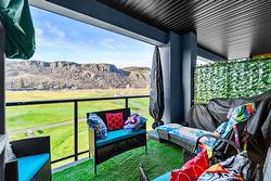 Step outside to the expansive covered deck, where you’ll enjoy privacy and inspiring, unobstructed views of the golf course and surrounding mountains—perfect for relaxing or entertaining. Additional features include two storage closets, in-suite laundry, air conditioning, window coverings, and one surface parking stall. The four-piece bathroom is finished with clean, modern details, completing the home’s polished and functional look.