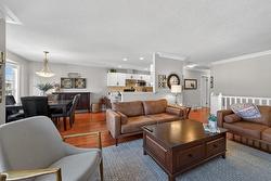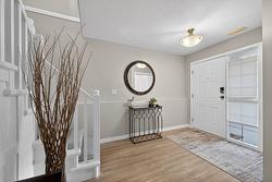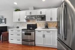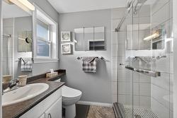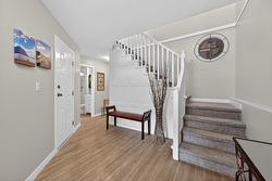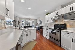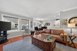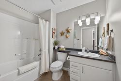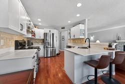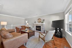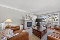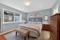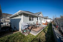 Easily one of the best units in the complex. Beautifully designed home featuring three bedrooms plus den and three bathrooms, complete with a single-car garage and central vacuum. The spacious primary bedroom includes an updated ensuite with a new walk-in shower. Enjoy a brand-new kitchen (March 2023) with newer appliances. The second upstairs bedroom includes a Murphy bed and sliders to the back patio, and the home offers a large, welcoming entry along with updated bathrooms throughout. Mechanical updates include a hot water tank (2018) and furnace (2021). Outdoor living shines with a large patio with extended deck, and gorgeous hillside landscaping. Additional features include hardwood floors on the main level, a Ring doorbell, and a water filtration system. All measurements approximate. Please call today for more information or to view.