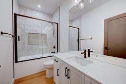This brand-new build which was built as BC Energy Step Code (or Zero Carbon Step Code) Level 4, sits on an impressive 11,000 sq ft panhandle lot, offering both space and privacy in a convenient Valleyview location. The level-entry design includes a fully framed and drywalled basement, ready for you to finish to suit your needs. On the main floor, you’ll find just over 1,500 sq ft of thoughtfully planned living space with 3 bedrooms and a bright, open-concept layout. The kitchen is a true centerpiece, featuring an island with bar seating, stone countertops, tiled backsplash, and stainless steel appliances. The living room showcases beautiful details including a cozy fireplace with wood mantel and a tray ceiling, while the dining area opens to a covered patio and yard access. The primary suite offers a walk-in closet and a spa-inspired ensuite with custom tiled shower, dual sinks, and a private water closet. Two additional bedrooms and a 4-piece bathroom complete the main floor. Practical touches include a mudroom with laundry and storage leading to the garage. Outside, a privacy fence and ample parking enhance the quiet setting, tucked away from Valleyview Drive yet within walking distance to shopping, dining, services, and transit. Families will appreciate the short 5-minute walk to the elementary school and just 15 minutes to the secondary school. GST applicable. All meas approx.