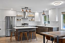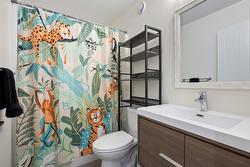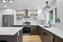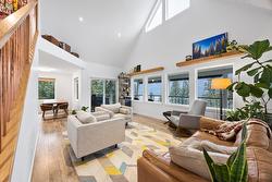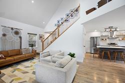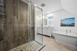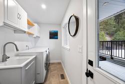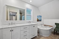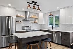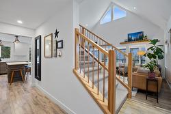 Take in breathtaking river valley vistas from the expansive wrap-around sundeck, or enjoy quiet mornings and glowing sunsets from the private deck off the primary bedroom. Inside, the bright, sophisticated kitchen is the heart of the home, featuring a large island, ideal for family gatherings and hosting friends. The upper level includes two generous bedrooms and a spa-inspired bathroom with double sinks, custom tiled shower, and a free-standing soaker tub—your own private retreat. The lower level offers exceptional flexibility with a family room, games area, exercise room, 4-piece bathroom, cold storage/utility room, and a separate daylight entrance, providing excellent suite potential.