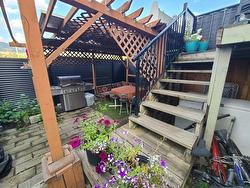 This affordable, three-bedroom, three-level townhouse is situated in a fantastic location, offering convenient access to schools, shopping centers, and various amenities.The home features a private outdoor space, complete with a large gazebo and a fenced greenspace, perfect for relaxing or entertaining. This property is part of a small, intimate complex with only eight homes. You'll also appreciate the recent upgrades, including a new furnace and air conditioning installed in 2025, and hard surface flooring thru out. The layout includes two bedrooms upstairs and a third bedroom in the basement. The primary bedroom currently has a temporary wall, which the sellers used for a small child, but this can easily be removed. The kitchen is equipped with a gas range and flows into an open-concept main living area with patio doors that offer a lovely view of the mountains. New furnace and AC 2025, hard surface flooring upgraded. The complex allows one pet with restrictions and has no age restrictions, providing flexibility for various lifestyles. Furthermore, one assigned parking spot is included, with the possibility of renting an additional spot if available.