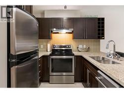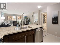 Live where others vacation. Lock-&-leave, walk everywhere, & enjoy downtown Kelowna at its best—stylish, social, & effortlessly cool. Downtown living—done right. Welcome to Waterscapes, where the lake is your neighbour, patios replace parking lots, & life feels a little more like a permanent vacation. This bright & beautifully updated 1-bedroom + den condo is perfectly suited for a young professional or couple who wants walkability, energy, & a home that keeps up with their lifestyle. Inside, the open-concept layout is made for hosting—whether it’s a dinner party, game night, or a quiet night in after a beach walk. The kitchen features granite countertops, stainless-steel appliances, & generous prep space, flowing seamlessly into the dining & living areas. A cozy fireplace adds just the right amount of vibe, while large windows & patio doors open to a covered outdoor space overlooking mature greenery & the pool—private, peaceful, & unaffected by future development. The bedroom is calm & comfortable with oversized windows, while the den easily flexes as a home office, Peloton room, or creative space (your call). The refreshed bathroom feels clean & spa-inspired, & in-suite laundry keeps daily life easy—because hauling laundry baskets across town is so last decade. Secure underground parking is included, along with exclusive access to the Cascade Club featuring a resort-style pool, hot tubs, fitness centre, & residents’ lounge. Step outside & you’re moments from the beach, breweries, coffee shops, restaurants, & Kelowna’s cultural district. (id:27)