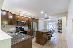 BEAUTIFULLY UPDATED AND IMMACULATE 2-bed, 2.5-bath Townhome at The Gate in Black Mountain —where class, comfort, affordability come together. Tandem double Garage plus driveway allows for 3 Vehicle parking! Covered porch and deck for morning coffee and barbecuing. Privately situated in the quiet middle area a few steps from an expansive landscaped area for your kids and relaxing! Tastefully updated throughout and move-in ready, this three-level home offers a traditional, functional layout with an open-concept main floor perfect for relaxing or entertaining. Updated Laminate through main living areas, and plush carpets in bedrooms are only 2 years old. Warm white paint gives a modern classy feel. Large kitchen features 2 year old stainless steel appliances, subway tile backsplash, and island with Granite counters. Eating area off Kitchen. Great flow seamlessly to the dining area and direct outdoor patio access for your enjoyment. Main floor 2 piece bathroom with pedastle sink. Upstairs, two generous bedrooms each boast a private full ensuite (3 piece and a 4 piece) an ideal setup for privacy. Tons of storage options in the tandem garage. Live moments from trails, Black Mountain Golf & Country Club, and just 30 minutes to Big White. Shopping, restaurants, and everyday amenities are minutes away. Professionally managed, low strata fees and ongoing maintenance—an excellent choice for first-time buyers, investors, or anyone seeking a low-maintenance lifestyle.