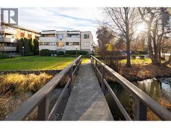 Welcome to easy, low maintenance living in this well cared for 55+ community, ideally located in the heart of Kelowna. This bright second floor 2-bedroom home has been thoughtfully refreshed with new paint, some new lighting and baseboards, and new baseboard heaters and hot water tank, offering a move in ready feel. The spacious living area opens to a covered balcony overlooking the creek, a peaceful spot to enjoy your morning coffee. The kitchen features new tile, new stainless steel appliances including a double door fridge, stove, dishwasher and range hood, along with ample cabinet space. A dedicated dining area is adjacent to the living room, creating an easy space for everyday living or hosting family and friends. The four piece bathroom has convenient access from both the hall and the primary bedroom. The bathroom has been updated with a new vanity and toilet. There is an in suite laundry room with added storage and shelving, and a wall unit air conditioner in the living room. Located close to Capri Mall with Your Independent Grocer, restaurants, a gym, dollar store and everyday essentials just minutes away; transit is nearby and Parkinson Recreation Centre is a short drive. The building has a monitored security system plus video monitoring for everyone's safety. Note: Non-smoking building. No cats or dogs permitted; fish, birds, small caged mammals only. Parking stall #6, storage locker #201. Extra parking stalls may be available for rent. (id:27)