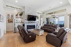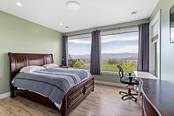 You are going to love the view from this beautifully designed walkout rancher in the sought-after Kirschner Mountain area. Offering 6 bedrooms and 5 bathrooms over 4,200 square feet, this home blends modern luxury with stunning lake and city views. Enjoy the breathtaking scenery the moment you walk inside. The main level features 3 bedrooms, 2 full bathrooms, and a half bath with in-floor heating. Highlights include high ceilings, a gas fireplace, hardwood floors, and an open-concept kitchen with stainless steel KitchenAid appliances. A large sundeck extends the living space outdoors, making it perfect for entertaining. The lower level includes 2 additional bedrooms, a full bathroom, a spacious rec room with a wet bar, and a fantastic soundproofed media room—ideal for sports and movie enthusiasts. There’s also a legal 1-bedroom suite with a private entrance and separate utilities, perfect for rental income or extended family. Additional features include central air conditioning, forced air and baseboard heating (electric and natural gas), a built-in vacuum, and a complete security system with surveillance cameras. The 0.24-acre lot offers a private yard with underground sprinklers and space for a pool. An attached double garage provides ample parking and storage. This is a high-quality home in a quiet, family-friendly neighborhood—ideal for comfortable living and entertaining.