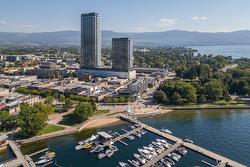NEW, 270 DEGREE LAKE/CITY/BRIDGE VIEWS, 3 BEDS+DEN, 500SQFT+ OUTDOOR TERRACE in Water Street by the Park’s “The Eli” - landmark 42-story centerpiece to define Kelowna’s skyline. This opportunity is 33 stories up. This luxury suite commands unobstructed views: from brilliant Okanagan Lake, across the glowing city skyline, out to mountain ridge lines. The southwest orientation ensures unparalleled sunsets and a visual drama that changes hour by hour. Enjoy spacious, open-concept living/dining/kitchen flow — perfect for entertaining or quiet evenings of repose. The den is suitable for a home office, media room, or flex space. Three well-proportioned bedrooms, including a sumptuous primary with walk-through closet and spa-inspired ensuite. Premium finishes, designer touches, sleek cabinetry, expansive floor to ceiling glass, FULGOR MILANO APPLIANCE PACKAGE and high-end fixtures throughout. Residents will benefit from rich amenities — resort-style pool, hot tubs, sauna, steam room, fitness & yoga studios, party lounge & kitchen, theatre, outdoor green spaces with fire pits, DOG RUN and WASH, kids’ play spaces, art room, business centre, putting green, and much more. Unrivaled walkability and connectivity: steps away from Kelowna’s waterfront, downtown’s cultural offerings, dining, shopping, and transit hubs.