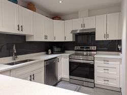 Beautifully renovated move-in ready home in a steel and concrete building. This 2 bedroom home has been updated with new engineered hardwood floors, stylish quartz counter tops, new cabinets, appliances and sink in the kitchen, a stand-alone bathtub and new vanity and tiles in the bright and modern bathroom. The balcony has been enclosed and the baseboards are all new. Nothing to be done but move in. The strata fees are reasonable and include hot water and shared laundry on each floor as well as the use of the hot tub and sauna as well as the building maintenance and the use of the social rooms, including a kitchen and meeting/art room. It is possible to rent an additional covered parking spot and an additional storage unit if required. Enjoy the advantages of this great location, very close to the Parkinson Recreation Centre, the Capri Mall and Orchard Park. Rentals allowed with no age restriction, no pets allowed.