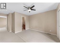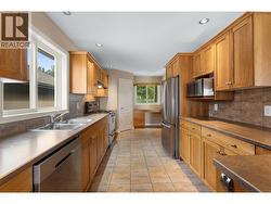 A rare opportunity in Sunset Ranch—this detached home is one of only three of its kind in the community, set at the end of a quiet cul-de-sac with a prime location directly overlooking the golf course. With a direct pathway to the fairway and its own golf cart garage, this property offers a lifestyle unmatched by others in the neighbourhood. Expansive park-like lot provides space and privacy, with room to add a pool if desired. Offering 4 bedrooms + den, 4 bathrooms, across three levels, the home is designed for comfort and flexibility. The main level features vaulted ceilings, a tiled fireplace, and large windows framing views of the mountains, valley, and golf course. The kitchen boasts shaker cabinetry, a full pantry, and peninsula seating, opening to the dining area with walkout access to a deck spanning the length of the home. A sought-after main-floor primary suite includes a walk-in closet, spa-inspired ensuite, and patio access, while main-floor laundry adds convenience. Upstairs, a loft-style landing leads to a generous guest suite with its own ensuite and golf course views. The lower level is a bright walkout with oversized windows, a massive rec room, two additional bedrooms, a 4-piece bath, and a cozy playroom. Outside, multiple patios and mature landscaping create a private retreat ideal for entertaining. With a double garage plus golf cart bay, extra storage, and an exceptional setting, this is one of Sunset Ranch’s most unique and desirable homes. (id:27)