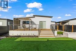 OVER $75,000 IN TOTAL UPGRADES - NO GST OR PROPERTY TRANSFER TAX - Flexible Possession! - Welcome to one of the most RARE floor plans in the desirable Deer Meadows Estates. This thoughtfully designed 2-bed, 2-bath layout is ideal for those who love the EXTRA spaciousness to unwind & entertain, forgoing the 3rd bedroom option. This results in an open-concept kitchen, dining, and living area that feels both expansive & inviting. The home showcases a full garage addition ($33k), upgraded interior package ($6800) with modern electric fireplace and energy-efficient hot water on demand, and a premium kitchen upgrade ($7350) featuring shaker panel cabinets, quartz countertops with seamless backsplash, undermount Blanco sink, under-cabinet LED lighting, & 9 deep drawers for enhanced storage. As well as a luxury double door fridge ($2500). Enjoy indoor-outdoor living with sliding doors leading to the patio & upgraded brown pressure-treated wood deck ($12,600). Additional outdoor enhancements include a second deck, landscaped backyard with pet-friendly synthetic turf, gazebo & shed, creating a full outdoor retreat ($7500). More Seller-added upgrades include washer and dryer, water softener & blinds. Deer meadows offers a pet friendly, modern, low-maintenance lifestyle with exceptional value & flexibility. Residents enjoy a community pickleball court & the Okanagan Rail Trail. Short-term rentals are permitted, adding excellent investment versatility. A great opportunity awaits! (id:27)