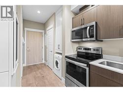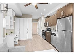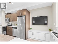 Welcome to Cambridge House - offering exceptional urban convenience in the heart of Kelowna. This 319 sq ft south-facing micro suite has been thoughtfully upgraded to maximize function and comfort featuring a custom Murphy Bed and built-in storage. The home is freshly painted and offered fully furnished, including sofa, TV, standing lamps, desk, chairs, and more, providing a turnkey living opportunity for owners or investors. The efficient layout includes stainless steel appliances, durable vinyl plank flooring, an in-suite washer/dryer, a 3-piece bathroom, and an in-wall heat pump/AC unit for year-round climate control. A covered parking stall and convenient same-floor 3' x 4' storage locker are included. Residents of Cambridge House enjoy an impressive selection of amenities, including a fully equipped fitness centre, residents’ lounge with games and seating areas and a landscaped garden terrace with BBQ area. The building is also pet-friendly (up to two pets, max 25 lbs each). Located steps from downtown, transit, and everyday amenities, this property appeals to first-time buyers, students, and investors seeking low-maintenance living in a central location. (id:27)