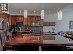 Discover the luxury of Mountain Spirit—your chance to own a top-floor 1 bedroom + 1 bathroom retreat in one of Kimberley’s most exclusive buildings, just steps from the ski hill. Built for year-round enjoyment, this beautifully maintained complex offers a heated outdoor pool, sauna, BBQ area, elegant lobby, heated underground parking, elevators, private sports equipment storage lockers, gym, and an exceptional on-site team—including a front desk lobby attendant for added peace of mind. Inside, this fully furnished top-floor unit features a bright, open-concept design with upscale finishes throughout. The chef-inspired kitchen is made to impress with granite countertops, stainless steel appliances, and a spacious eat-in island—perfect for entertaining after a day on the slopes. The inviting living area is anchored by a cozy fireplace and flows seamlessly into a generous bedroom and a well-appointed bathroom designed for comfort and relaxation. Step out to your large covered deck adjacent to the ski hill and pool, the perfect spot to soak in the mountain atmosphere and stunning surroundings. You’ll also appreciate air conditioning, in-suite laundry, and ample storage. Strata fees include all utilities, cable, and internet, making ownership simple and stress-free. Located minutes to downtown Kimberley’s restaurants and shopping, 25 minutes to Cranbrook, and roughly four hours from Calgary, this is an incredible opportunity to own a piece of true mountain luxury. (id:27)