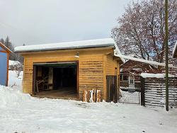 Welcome to this charming 3-bedroom, 1-bathroom residence ideally situated in the highly desirable Townsite area. This property blends classic character with practical family living, beginning with a bright, inviting enclosed front porch. Step inside to the cozy living room, anchored by an added wood stove that provides wonderful warmth and ambiance. From here, the flow leads seamlessly into the bright kitchen, which offers a gas stove and ample cupboard space. Completing the main floor layout are one bedroom and the bathroom. Upstairs, you will find two more generously sized bedrooms. A convenient back entry area provides seamless access to the outdoors. The exterior is an absolute dream for families and hobbyists! Enjoy the beautiful, fully fenced yard, shaded by a magnificent mature maple tree. Socializing is easy on the fabulous two-tier deck, all while catching delightful peak-a-boo view of the ski hill! Practicality is guaranteed with two garages—one of which has a 30 amp panel, making it the perfect setup for a dedicated workshop or studio. This haven is ready for a new family to create lasting memories. Don't miss the opportunity to own a unique piece of Townsite charm!