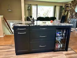 Welcome to your dream home! This beautifully renovated home is just waiting for a new family. The spectacular custom kitchen features an island, granite countertops, and the coolest coffee bar. Entertaining is easy as everything is open, you can still visit with your guests from the kitchen or dining room. The full bathrooms up and down are both beautifully renovated. The spacious primary bedroom features a two piece ensuite and a good size closet. There are two more bedrooms on the main as well as one downstairs along with a family room and an outside basement entry. That space could be fantastic for a potential suite. If you like the option of wood heat this home has a fireplace on the main and a wood stove in the basement. The outside features a two level deck with a hot tub. You will never want to go inside once you settle in the multiple spaces on the cedar deck! There is additional storage under the deck, a storage shed, and a woodshed. Now that the evenings are getting cooler, you can enjoy the fire pit looking out to the green space. This home has been lovingly looked after by a happy family. Take a look with your REALTOR. You will be happy you did! So much more to see and so many extras that could be included with your purchase.
