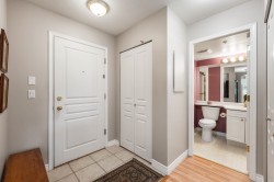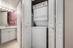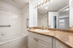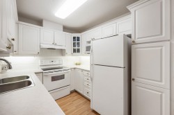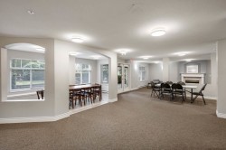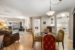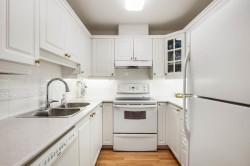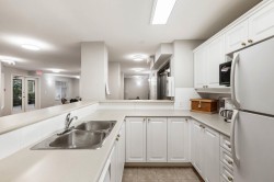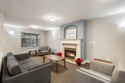 Beautiful 2 bedroom, 2 bathroom condo in the heart of Ladner. This bright, open-plan home features laminate flooring throughout and a well-designed kitchen with plenty of natural light. Spacious primary bedroom includes a walk-in closet and a full ensuite. Cozy living room is highlighted by a gas fireplace and large patio doors that open to a covered balcony overlooking the peaceful gardens on the quiet side of the building. Large windows throughout the home provide abundant natural light. In-suite laundry with additional storage The unit includes two parking stalls and a storage locker. Residents enjoy excellent amenities including a large amenity room ideal for gatherings, a gym, and a beautifully landscaped patio area. Walk to shopping and services. 2 pets (dogs 16” to shoulder)