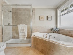 Lovingly cared-for home that offers a combination of quality and the rare like-new condition inside. This residence reflects pride of ownership throughout, providing a move-in-ready opportunity for discerning buyers. Over 2,600 square feet with formal living and dining rooms, gourmet kitchen, family room, 4 large bedrooms upstairs plus 1 bed/den on main floor (there is also a 3 piece bath on the main floor). Hardiplank siding, tile roof, hardwood and granite countertops exude quality. Outside, the property truly shines with professionally landscaped gardens, enhanced by beautiful lighting that creates a elegant ambiance. A full sprinkler system keeps the grounds lush and low-maintenance year-round. Situated in desirable South Hampton neighbourhood.
