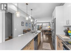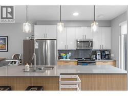 Enjoy Okanagan living just steps from Wood Lake in this impeccably maintained 2-bedroom, 2.5-bath townhome with a bonus room/flex room off the garage, perfectly located in the heart of Lake Country. Nearby lake access makes this a great place to call home that conveniently combines lifestyle, comfort, and convenience in one of the Okanagan’s fastest-growing communities. The main level features a bright, open-concept design with modern finishes throughout. The kitchen is well appointed with quartz countertops, a central island, stainless steel appliances. There is also a 2-piece bathroom just off the kitchen for convenience. Upstairs, two generous bedrooms include a primary suite with walk-in closet and ensuite featuring dual sinks and a walk-in shower. A full main bathroom with bathtub serves the large second bedroom. The garage level provides parking for one vehicle and comes with a great finished bonus/flex room that is currently used for guests, but offers great potential space for a home gym, office, or additional TV/Recreation room. There is ample street parking available. The unit features an outdoor deck with gas bbq hookup off the kitchen and a patio off the living room with a small wooden deck and some common grass space for kids to play. Located near restaurants, shopping, beaches, and the Rail Trail, this location offers convenient Lake Country living and it's only a 15 minute drive to UBCO and Kelowna International Airport. (id:27)