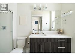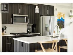 Welcome to this delightful 3-bedroom, 2.5-bathroom townhome. The main floor offers a spacious open-concept kitchen with a gas stove, over-the-range microwave, and an expansive island perfect for casual dining or entertaining in the separate dining area. The living room is enhanced by a gas fireplace, adding comfort and style to modern living. Revel in the luxury of 10' ceilings throughout, complemented by heated bathroom floors for added comfort on chilly mornings. The primary bedroom provides a relaxing retreat featuring a private ensuite and a spacious walk-in closet. Outdoor living is a highlight, starting with a front balcony and a private back patio equipped with a gas line for BBQs and a fenced yard. The unit is filled with morning light, while the west-facing backyard enjoys full sun from noon onward and beautiful sunsets over the mountains and McPollard Pond. For parking and storage, the large tandem garage offers plenty of room in this family-friendly neighborhood. Ideally situated between Wood and Okanagan Lake, you are just a short walk to McPollard Pond, the general store, and local services like a hair salon and chiropractor. A quick trip down the hill brings you to gyms, medical clinics, and Starbucks. This location is perfect for outdoor enthusiasts, sitting directly underneath Spion Kop with endless hiking and biking trails, and only a short drive to world-class beaches, breweries, and cideries. (id:27)