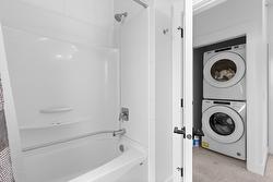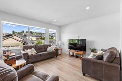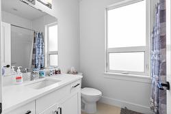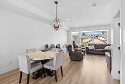 Bright & Modern End Unit in Rockridge at The Lakes. A vibrant and family/pet friendly townhome community in the heart of Lake Country. This stylish 3-bedroom + den/flex, 3-bathroom end unit offers the perfect blend of space, functionality, and comfort. Flooded with natural light, the main floor showcases a modern open-concept design with large windows throughout. The kitchen is a true highlight, featuring quartz countertops, a gas range, sit-up island, and cozy eating nook. The layout flows seamlessly into a spacious dining area and bright living room—perfect for everyday living and entertaining. Step out from the kitchen to your private, elevated backyard oasis with panoramic Eastern Mountain views. With no units directly behind, you’ll enjoy added privacy along with a gas hookup, power, and water connection. Upstairs you’ll find three well-appointed bedrooms, including a generous primary suite with a 4-piece ensuite. The laundry is conveniently located on this level as well. The lower level adds valuable flexibility with a den/flex room – perfect for a home office, gym, or guest space. Additional features include a double car garage, a full-length 26 ft driveway that easily accommodates most vehicles, and close proximity to visitor parking—making hosting friends and family a breeze. This home truly has it all—modern comfort, unbeatable functionality, and a fantastic location.