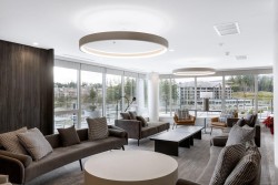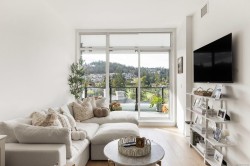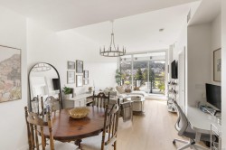 Experience elevated resort living at One Bear Mountain, where modern luxury meets West Coast tranquility. This bright west-facing 1-bedroom home showcases oak flooring, 9-ft ceilings, and floor-to-ceiling windows with stunning views of the 18th fairway and Mt. Finlayson. The gourmet kitchen features Bosch appliances, quartz countertops, and Italian cabinetry. It opens to a sunlit living area with a home office nook and spacious patio with BBQ hookup, ideal for relaxing or entertaining. The primary suite includes a walk-through dressing area and a spa-inspired ensuite, creating a peaceful retreat. Residents enjoy world-class amenities such as the 16th-floor Grenoble Sky Lounge, Fitness and Yoga Studio, Outdoor Pool, Sundeck, and Business Center. This home includes secure parking, storage locker, a bike room, and a dog wash station. Every detail has been designed for refined, effortless living at Bear Mountain.