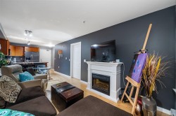Exceptional value awaits at McConnell Place West! Set on the quiet side, this bright 1 Bed + Den offers an efficient layout with a spacious primary suite and a versatile den that serves as a second bedroom or dedicated office. The open living area features a cozy electric fireplace and access to a private balcony, perfect for enjoying the morning sun. The kitchen boasts quality stainless steel appliances, an eating bar, and ample in-suite storage. The primary suite features a convenient cheater ensuite with stylish slate floors. Amenities elevate the lifestyle: secure underground parking, storage locker, gym, rec room, and a rooftop balcony. This is a true pet-friendly haven, allowing up to two small dogs, a rare and coveted strata feature! The location is phenomenal: close to Royal Colwood Golf Course and steps to Goldstream Village for shops, restaurants, and groceries, or bike the nearby Galloping Goose Trail. An amenity-rich, smart investment in a prime Langford location!