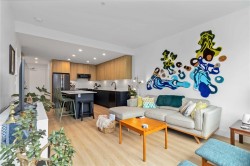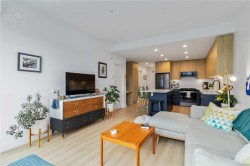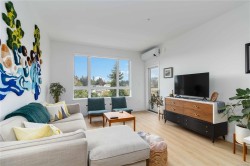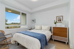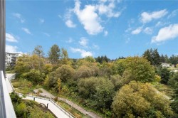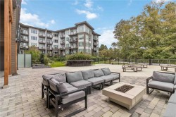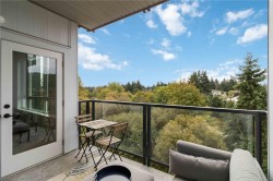 OPEN HOUSE SATURDAY NOVEMBER 1ST FROM 1PM - 2:30PM !! Welcome to Reunion at Belmont, where Pacific Northwest luxury meets modern convenience. This 1-bedroom + den home offers elevated living with nearly 700sq/ft, a heat pump for year round comfort, and rich wide-plank flooring. The gourmet kitchen shines with quartz countertops, custom cabinetry, premium stainless steel appliances, and extended new home 2-5-10 year warranty for peace of mind. Unwind in the spa-inspired bath featuring floor-to-ceiling tile, a deep soaker tub, and elegant fixtures. Enjoy stunning landscapes and treetop views from your sunlit, 80sq/ft patio, backing onto green space. This pet-friendly community includes secure underground parking, separate storage locker, a fitness center, pet club, private terrace, and access to the exclusive Belmont Club. Two cats or two dogs allowed - NO SIZE RESTRICTIONS ! Steps to the Galloping Goose trail, fine dining, and shopping. This is Westshore living at its finest!