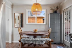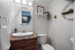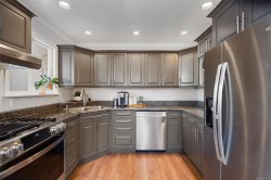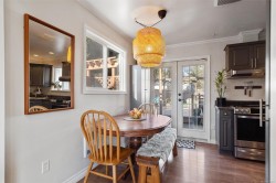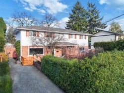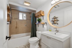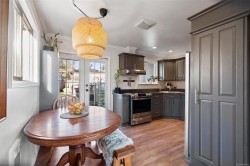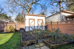 Delightful 3BR, 2Bth + den home on a large, sunny lot, steps to Westshore’s best! Enjoy all day sun on the private front yard, partially covered porch, charming entry & spacious living rm w/gas fireplace. Beautifully updated kitchen & bright dining area w/braided pendant light & french doors to backyard & deck. Gas range, newer dishwasher & fridge & abundant cupboard & counter space. Fantastic den on main floor – perfect for home office or guests, next to tastefully updated 2pc bath. Laundry w/barn doors, window & storage galore. 2nd floor has 3BR & fully updated 4pc bath. Additional updates include windows, window coverings, paint, trim & smart switches. Incredible yard has it all – lots of sun on the big back deck, wired greenhouse, two sheds, kayak storage & drip irrigation. Enjoy apples, cherries, grapes, kiwi, blueberries, lavender & chard. 2024 roof, EV charger & parking for two or RV, plus street. Walking distance to grocery, library, coffee, parks, transit & trails. Act quick!