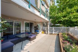 This ground floor 2 bed 2 bath corner unit, located in central Langley City is perfect for those patio lovers! You get one extended patio out front and one smaller patio on the side. Couple that with how large the unit is, you get more of a private townhome feel while still being located perfectly near shops, schools and public transport. This beautiful unit come with, updated kitchen countertops and sink along side all new flooring! The Primary bedroom has its own private access to the larger patio, large closet and an ensuite 3 piece bathroom! There is also a 2nd large bedroom, 3 piece bathroom, Large laundry room and a massive open living area! This unit also comes with a good sized locker located across the hall from you for easy access.