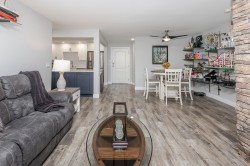 Welcome to Bayberry Lane! Nestled in a quiet Langley City neighbourhood walk to shops, amenities & close to several parks & walking trails. Elevated above ground condo with over 1000 sq ft of living space with Primary & 2nd bed & bath at opposite ends for total privacy. Primary easily fits a king bed, has his/hers walk through closets & ensuite with DBL shower. Totally renovated with a showstopper kitchen featuring S/S appliances, elegant 2 tone shaker cabinets, tons of quartz counters including huge peninsula. Kitchen extends to the large laundry with additional cabinets & side by side modern washer/dryer. Open plan dining & living room with cozy gas fireplace & access to the large balcony, perfect for entertaining, overlooking the courtyard & water feature. Pet friendly for dogs & cats.