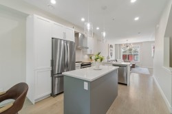 Welcome to Gabriola Park-Parkside Townhomes by Royale Properties, beautiful 4 bedroom, 2.5 bathroom townhome! The main floor features an open-concept layout with 9’ ceilings, where the kitchen is the heart of the home. Designed with style, stainless steel appliance package including a Venmar chimney hood fan. The kitchen smartly separates the living and dining spaces, creating both function and style. A powder room on the main floor adds convenience, while the covered balcony off the dining room is perfect for year-round, overlooking the fully fenced backyard. The true highlight of this home is its prime location backing onto a lush greenbelt—offering peace, privacy, and a touch of nature. Centrally located near multiple high rated schools, eatries, shops, parks, transit and so much more!