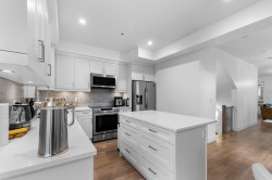Lare CORNER UNIT townhouse is the heart of Langley City. The expansive living space comprises of 4 bedrooms & 4 bathrooms in addition to the large Rooftop Terrace with beautiful unobstructed views of Mount Baker & the Golden Ears. This home features a large garage with workshop space and plenty of storage, a full-sized deck with sliding doors, a huge kitchen with big Island and stainless steel appliances, Dining room, bright & spacious living room to enjoy evenings with family. This friendly neighborhood is close to schools, Willoughby Town Centre, Children's Park, Dog park and Brydon Lagoon.