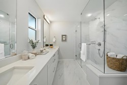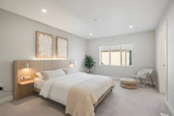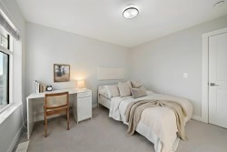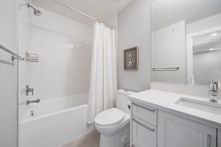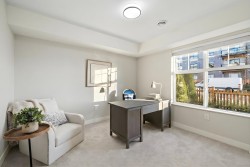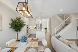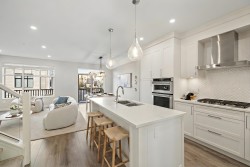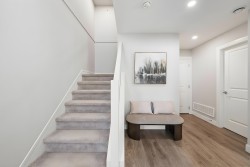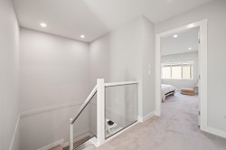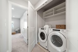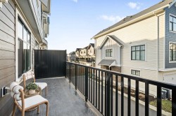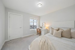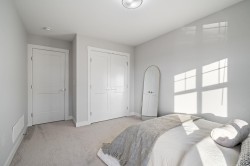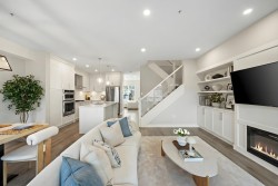 Welcome to TRIBUTE, a contemporary home that blends modern luxury with effortless living. This elegant 4 bedroom, 3.5 bathroom residence offers 2,085 sq.ft. of thoughtfully designed living space, including separate living and family rooms. Refined finishes include sleek glass stair railings and a spa-inspired ensuite. The signature entertainment wall features a contemporary fireplace, custom built-in shelving, and integrated wire management—perfect for both everyday living and entertaining. The kitchen is equipped with a gas cooktop, French-door refrigerator, and a wall oven with an integrated microwave. Additional highlights include a double side-by-side garage and forced-air heating with A/C. Ideally located on a quiet street, the home is within walking distance to schools.