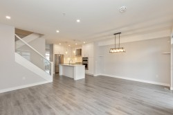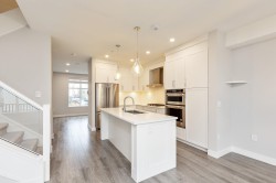Welcome to TRIBUTE ,a modern 2000+ sq.ft. residence with open-concept design, 9-ft ceilings, glass stair railings, and a sleek custom entertainment wall with fireplace and built-ins. The gourmet kitchen is a showpiece, featuring a quartz island, 5-burner KitchenAid gas cooktop, French door fridge, built-in pantry, and wall oven with microwave. A versatile second living area ideal for a home office or kids' playroom. Primary suite includes a spa-inspired ensuite with a rain shower and quartz bench. A private 4th bedroom and full bath below are perfect for guests or teens. Enjoy outdoor living with a spacious patio and BBQ hookup, plus a double epoxy garage with built-in racks. Forced air heating, A/C, and walking distance to schools(International Baccalaureate Program), parks, shopping.
