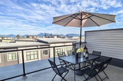 ROOFTOP PATIO & CORNER UNIT at Boulevard in Willoughby Town Centre! Private rooftop patio with snow mountain views — perfect for summer BBQs and relaxing evenings under the stars. This modern 3-bedroom 2.5 bathroom home features an Extra-wide living area made possible by a Side-by-Side garage, along with 10’ ceilings and oversized windows that flood the home with natural light. Residents enjoy access to a clubhouse ideal for birthday parties, a children’s playground, and ample visitor parking. Steps to Willoughby Town Centre, with easy access to Langley and only a 5-minute drive to Highway 1. Walking distance to Richard Bulpitt Elementary, and Yorkson Creek Middle and R.E. Mountain Secondary School with IB Program — an ideal choice for families. *OH 2-4pm Feb 14& 1-3pm Feb15* Must see!