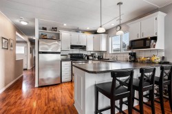 Nestled in the tranquil 55+ community of Pioneer Park in Aldergrove, #165 offers a peaceful retreat close to shopping and amenities, with serene farm surroundings near the US border. This move-in ready home, lovingly maintained by the same owner for 20 years, features 2 bedrooms, 2 bathrooms, and modern updates. Enjoy an open-concept living area with a gas fireplace and abundant natural light from south-facing windows. The updated kitchen boasts stainless steel appliances, while a heat pump ensures year-round comfort. Outdoor living is enhanced by a fully covered oversized deck, a large car park & a detached storage shed. With co-op land ownership, a $510 monthly maintenance fee, and no size restrictions for two pets, this community welcomes you & your furry friends. Book your appt today!