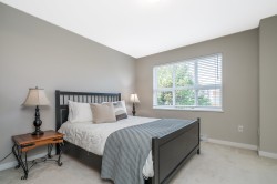 Welcome to Polygon’s highly sought-after Red Maple Park! This stunning 2 LARGE bedrooms, 2 bath PET FRIENDLY t/h offers parking for 3. PRIME LOCATION directly across from the pool, hot tub & clubhouse. Step inside to soaring 9’ ceilings on the main level, creating a bright, open feel, plus freshly & professionally painted throughout. The spacious ensuite boasts a double vanity & oversized shower. Relax by the cozy fireplace in the open-concept living area. Families/couples will love resort-style amenities incl. outdoor pool, hot tub, fitness studio, ball hockey arena, 2 guest suites + massive playground. Just a 1/2 block walk to Bullpit Elementary via the adjoining path. Steps to shopping & dining at Willoughby Town Centre and under 5 minutes to HWY 1! OPEN HOUSE SAT FEB 14TH 2-4PM
