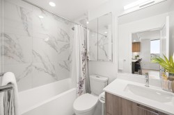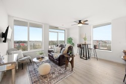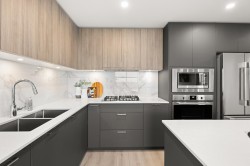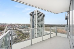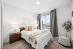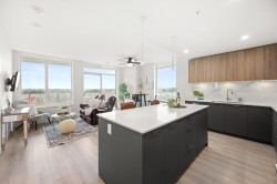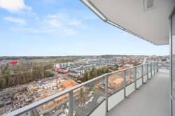 Soar above the city from the 18th floor at The Towers, Langley’s first concrete high rise. This 1 bedroom + den corner suite captures incredible views of Golden Ears and Mt. Baker and features over 300 sq. ft. of wraparound patio space for seamless indoor outdoor living. The stylish kitchen is equipped with a large island and premium Fulgor Milano appliances, while the bright open concept design offers A/C, quality finishes, and a walk in closet in the primary bedroom. Complete with TWO PARKING STALLS!, EV ready charging, a storage locker, and impressive building amenities. Ideally located close to schools, transit, shopping, and Hwy #1 for effortless everyday convenience.