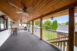 Set on a private 15,000+ sq ft fully fenced lot, this versatile 5-bedroom, 3-bath Langley home offers exceptional space and flexibility. Ideal for car enthusiasts or hobbyists, the property features a double garage, multiple workshops, ample storage, and parking for 10+ vehicles. Inside, enjoy light-filled living areas, a natural gas fireplace, and a refreshed kitchen. The primary retreat boasts vaulted ceilings, an ensuite, generous closet space, and French doors leading to expansive sundecks. Outdoors, the serene yard us framed by mature cedar hedges and includes a large pond and storage sheds. A 2-bedroom suite provides excellent options for extended family or rental income. Peaceful and private, yet minutes to everyday amenities.