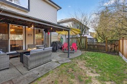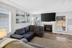 Welcome to DERBY CREEK - rarely available duplex-style townhome in a quiet, well-run 11-unit community located in the heart of Walnut Grove. Offering almost 2200sqft, 4 beds, 3 baths, finished basement & A/C, this home provides the space and functionality of a detached home. Generous room sizes and flexible layout ideal for families or work-from-home living. Just minutes from top schools, parks, rec centre, shopping and commuter routes, this one checks all the boxes! The main floor features cozy living area with gas fireplace, walk-out to fenced backyard, large kitchen, bedroom/office and powder room. Upstairs primary suite walk-in closet & 3pc ensuite, 2 large bedrooms, laundry room and main 4pc bath. Downstairs almost 500sqft rec area plus storage galore! OPEN HOUSE SAT & SUN 12-2PM