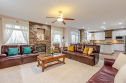 Meticulously maintained 6 bed / 3.5 bath, 3,691sf home loaded with perks! Main flr features an open-concept chef’s kitchen w/white cabinets, granite counters, s/s appliances incl. gas stove, coffee bar, & striking rock accents. The spacious living rm showcases a Whistler-inspired rock wall & cozy gas fireplace. Also on the main: separate dining, office/flex rm, powder rm, & mud/laundry rm. Upstairs offers a massive primary retreat w/vaulted ceilings, spa-like ensuite & W/I closet, + 3 generous beds & a full bath. There's more! Media/rec rm in the basement! BONUS 2-bed suite w/ separate entrance. Updates: fresh paint, refinished hardwood, new carpet, & new laminate. An abundance of natural light + backing onto greenspace in a GREAT location close to schools, shopping, transit, LEC + Hwy 1!
