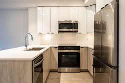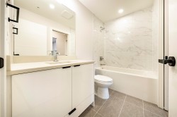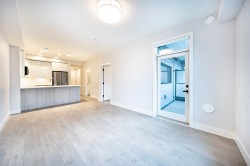 This spacious 679 sqft 1-Bedroom with 1-Den condo is located in Central Langley City. The unit includes 1 EV parking spot and 2 storage lockers. It features 9-foot ceilings, ultra-quiet stainless steel appliances, quartz stone countertops, and custom closets.The textured laminate Flooring in the kitchen, and living areas, bedroom and den. Building amenities include a fitness room, roof deck. Walking distance away from schools, shopping, dining and the upcoming Langley/Surrey Skytrain station. OPEN HOUSE 2-4 SUN (Feb 1)
