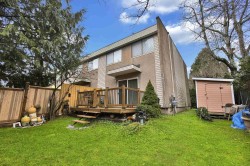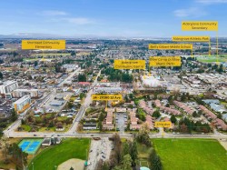 Welcome to this hidden gem- Yes, a detached-home like TOWNHOME in the heart of Aldergrove! A fully renovated, 2-storey corner unit boasting of 3 bedrooms + den + flex room use as office/4th room + 2 bathrooms & many closets. Recent expensive upgrades include luxury flooring, premium carpet, shaker-style kitchen / bathroom cabinets, countertops, costly penny tiles backsplashes, cordless f/wood blinds, superior paint, lovely barn-door etc. New, gorgeous patio. Upgraded appliances. Big cedar-wood storage shed. Under-stair pantry room + huge crawl space for extra storage. Front yard + massive backyard with new sturdy fence. Great neighbors. Perfect locality-schools, parks, tennis/pickle ball court, clinics, bus-stop, daycare, Rec. center, pool etc. all at walk-in distance. Quick access to HWY