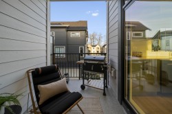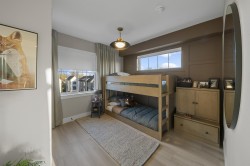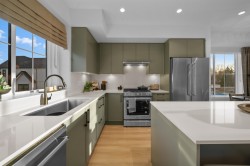 MOVE-IN READY at LATIMER WALK by award-winning Zenterra Developments. This bright, modern 3-bedroom home features a stylish kitchen with a full KitchenAid appliance package, ideal for everyday living and entertaining. Enjoy laminate flooring throughout, air conditioning, forced-air gas heating, and hot water on demand for year-round comfort. This south/east/north-facing corner home backs onto a 5m greenbelt and includes a spacious fenced backyard. Additional features include a BBQ gas hookup, garburator, and built-in wood closet organizers. By appointment Saturday–Thursday, 12–5 PM.