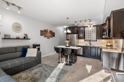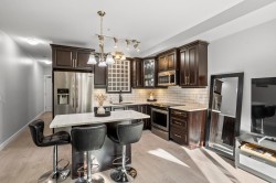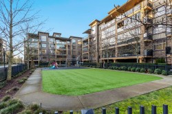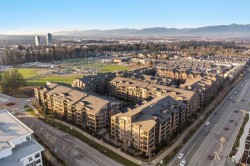 Willoughby Stunner! This elegantly updated home is one not to miss. New high-quality laminate flooring throughout, quartz countertops and large kitchen island upgraded! Bonus A/C in every room and 2 side by side parking stalls. Rest and relax on your oversized south-facing patio that overlooks the park and acts as a solarium in winter and opens up beautifully in summer. Well-managed building with 2 elevators, gym, amenity room, and storage locker. Prime location steps to the incredible Yorkson Community Park playground and dog park and just minutes to 200th St and Hwy 1. This beautifully updated home is a must see!