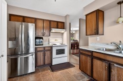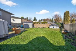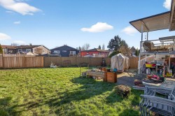 Welcome home to the sought-after neighbourhood of Langley Meadows. This well maintained home offers a bright, spacious living room, two bedrooms, and a full bathroom on the main level. The kitchen remains original, providing a great opportunity to create a space that reflects your own style. The lower level features a large recreation room, a convenient half bath, and flexible space for family living, hobbies, or future plans. Situated on a nice, fully fenced lot, the home includes a covered deck for year-round enjoyment and the convenience of a tandem garage. Major updates include the roof & gutters(2018), fence(2019), covered deck(2020), windows(2022), hot water tank(2021), furnace & air conditioning(2022). Ideally located close to schools, shopping, transit, and the future SkyTrain