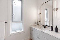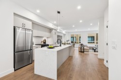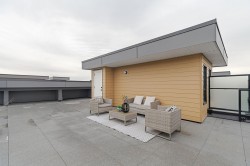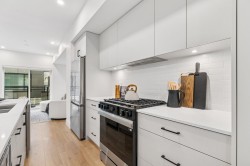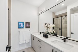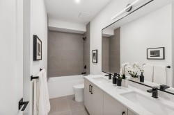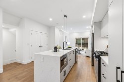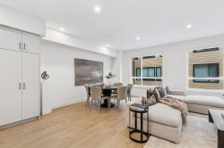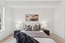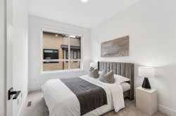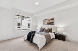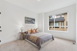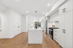 BRAND NEW 4 BEDROOM TOWNHOME WITH ROOFTOP DECK! This townhome features an open concept kitchen with sleek cabinetry, large kitchen island with quartz waterfall countertops, stainless steel appliances including gas range, flowing on durable laminate flooring into the spacious living and dining rooms and opens onto a patio with gas hookup. Appreciate 9' ceilings, forced air heating/air-conditioning and roller blinds throughout. Above is a primary suite with 4 piece ensuite and walk in closet as well as 2 additional spacious bedrooms and a shared bathroom with double vanity and side by side laundry. Below is an ensuited fourth bedroom with lock off potential. This home features a 663SF rooftop deck and double garage with EV charging! ***OPEN HOUSE: SUNDAY FEBRUARY 8 2-4PM***