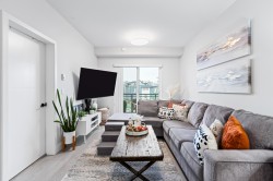 HELLO GORGEOUS! Celebrating a bright+spacious 912ft designer home just steps to Brydon Lagoon, Nickomekl river trails & close to the FUTURE SKYTRAIN expansion! An expansive 2 bedroom + den/office/nursery and 2 bath home w/9ft ceilings to invite abundant natural light throughout modern and high quality living. A stunning kitchen w/premium finishing to cook and entertain, set over open living and spacious west exposed patio for morning coffees and evening sunsets! Functional as a 3 bed if needed! Revitalize at Ezekiel’s residents-only gym, yoga studio or relax & unwind in the fully equipped theatre room. BUILT TO LAST by the Fraser Valley’s multi-family specialist Whitetail Homes, and only a few years young for peace of mnind living and excellent long term investment! VACANT DEC 1!