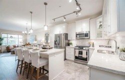 Ready to move in. Only 4 floor building. Excellent central loc. Welcome to Kensington Gate by Quadra Homes! The Best Condo builders around. Unit has 2 bedrooms & 2 Full bathrooms. Primary bedroom has 4 pc. ens. & W/I closet. Gourmet kitchen stocked with stainless steel high end appliances include, a 5 burner gas cooktop, convection oven, quartz countertops and white. shaker cabinets. Heated tile floors in both bathrooms, Unit has 9 ft ceilings, oversize windows. High quality finishing and A/C included !! The 11'6 x 7' sundeck includes Natural gas hook up for BBQ. Gas included in Strata fee. Secured 2 Car U/G parking space with access for electric car charger. Bike + extra storage. Pull down Shutter. Pickle court. Walk to restaurants, shopping & future Sky train station. Easy Hwy Access.