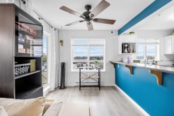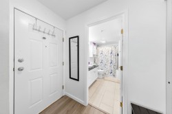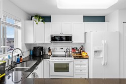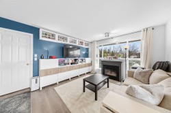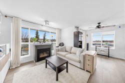 A fantastic opportunity for first-time buyers or investors alike! Welcome to Willowgate—a bright and beautifully 1-bedroom, 744 sq ft home offering comfortable and functional living. This unit features northeast exposure, mountain views, and a spacious L-shaped balcony perfect for relaxing or entertaining. The open-concept kitchen flows seamlessly into the living area, complete with a cozy gas fireplace (gas included in strata fees) and a generously sized bedroom. Includes 1 parking stall. Located in an unbeatable, walkable neighbourhood—just steps to Willowbrook Mall, Superstore, restaurants, and transit, and only a few blocks from the future SkyTrain.